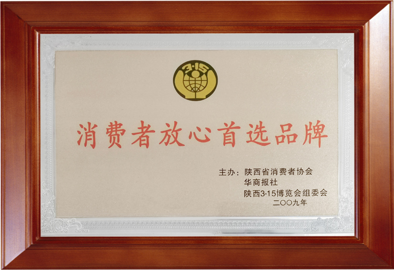 2009年陕西省消费者协会、华商报社、陕西3.15博览会组委会 授予——消费者放心首选品牌